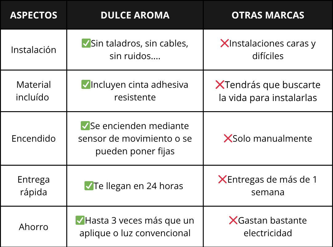 Son fáciles de instalar, ya que se montan en cualquier pared que sea lisa. Además, su diseño compacto y sin cables las hace perfectas para colocar en cualquier lugar, desde pasillos, habitaciones, armarios, baños, terrazas hasta caminos de entrada y jardines.